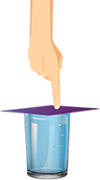 Lo que mantiene a la cartulina debajo del vaso sin que se caiga es la presión que ejerce la atmósfera en todas direcciones. La presión de aire es más grande que el peso del agua dentro del vaso, la cual empuja a la tarjeta hacia abajo. Por cierto, se requiere de una columna de agua con una altura de unos centímetros más de once metros para que empuje a la tarjeta y caiga junto con el agua. Cuando la tarjeta no queda apoyada firmemente sobre la boca del vaso, dejará entrar al aire y el agua escapará, ocasionando que la demostración no funcione y nos cause una decepción.